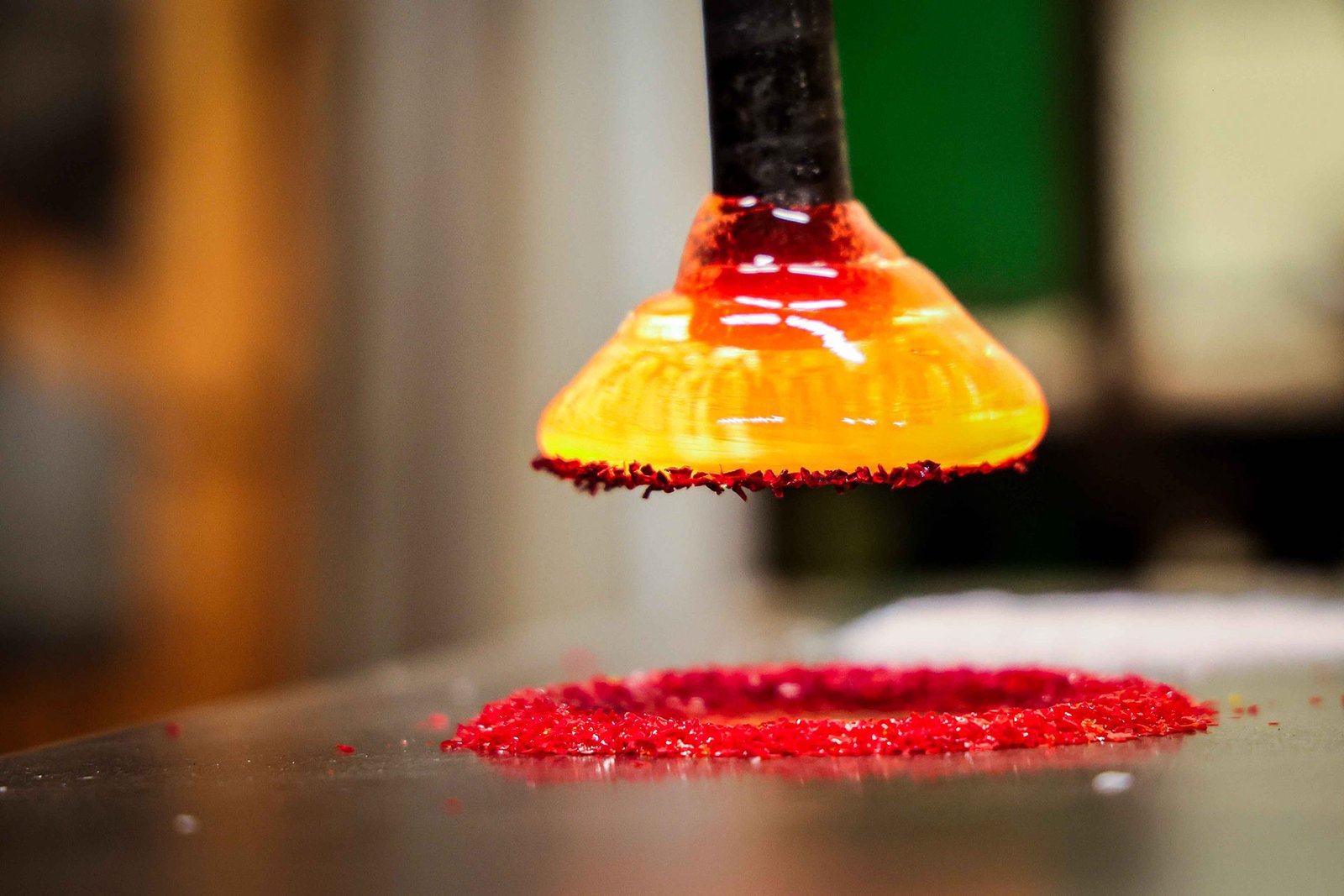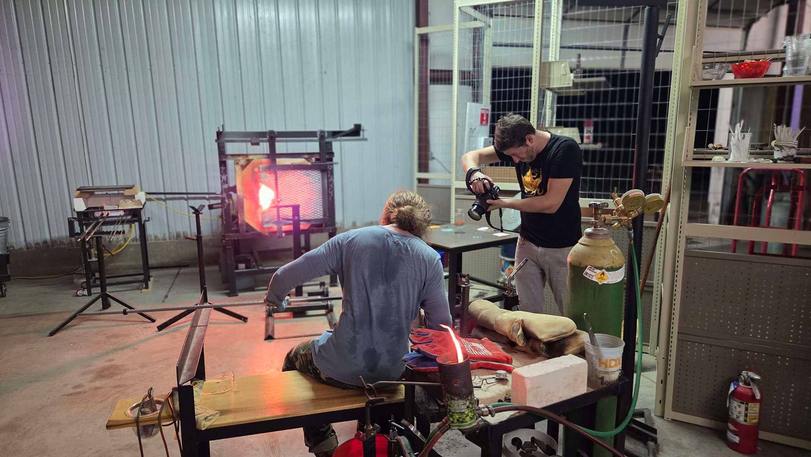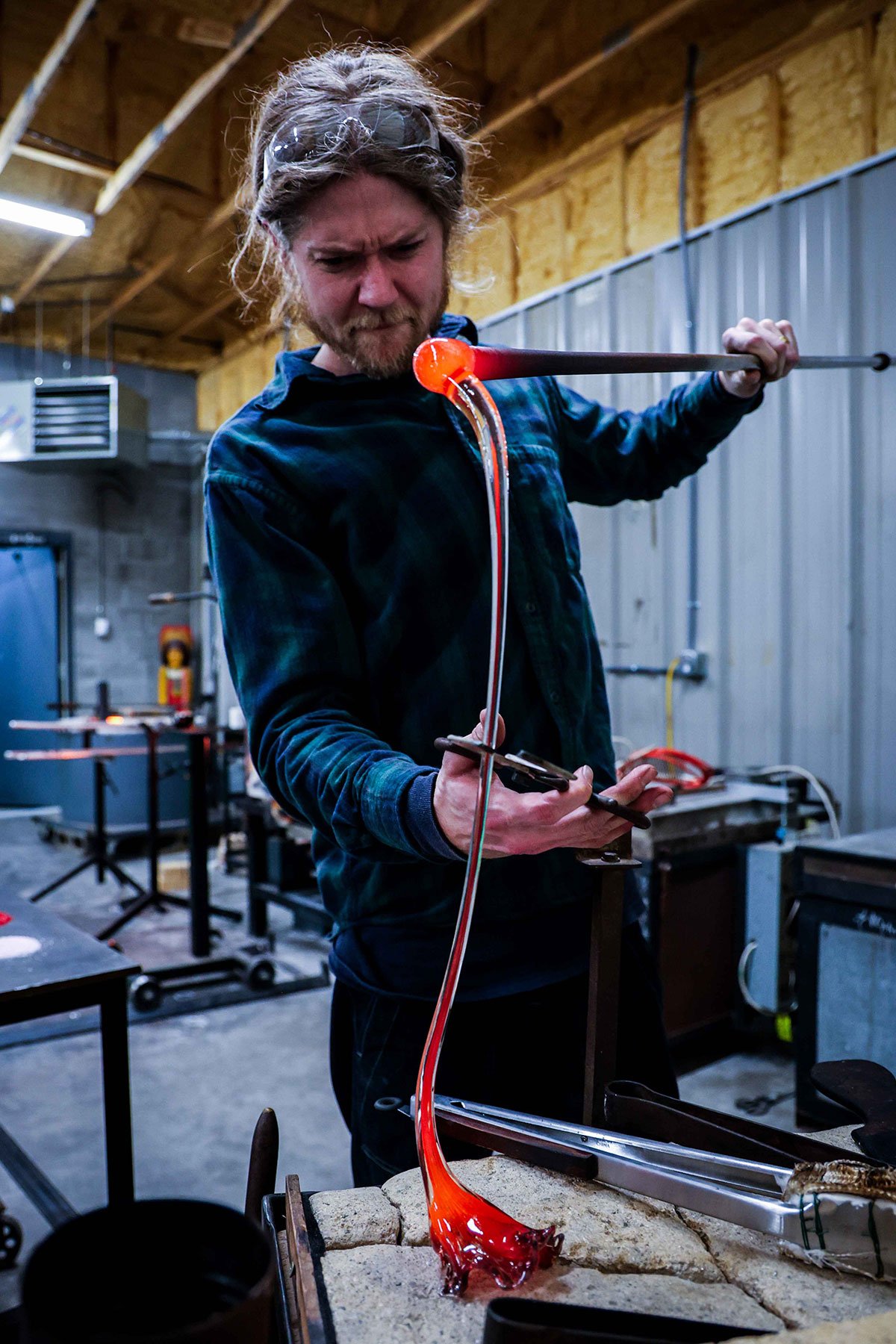 Molten glass, good music, and plenty to look at. Swing by during shop hours to watch work in progress, browse finished pieces, or pick up your cooled glass.